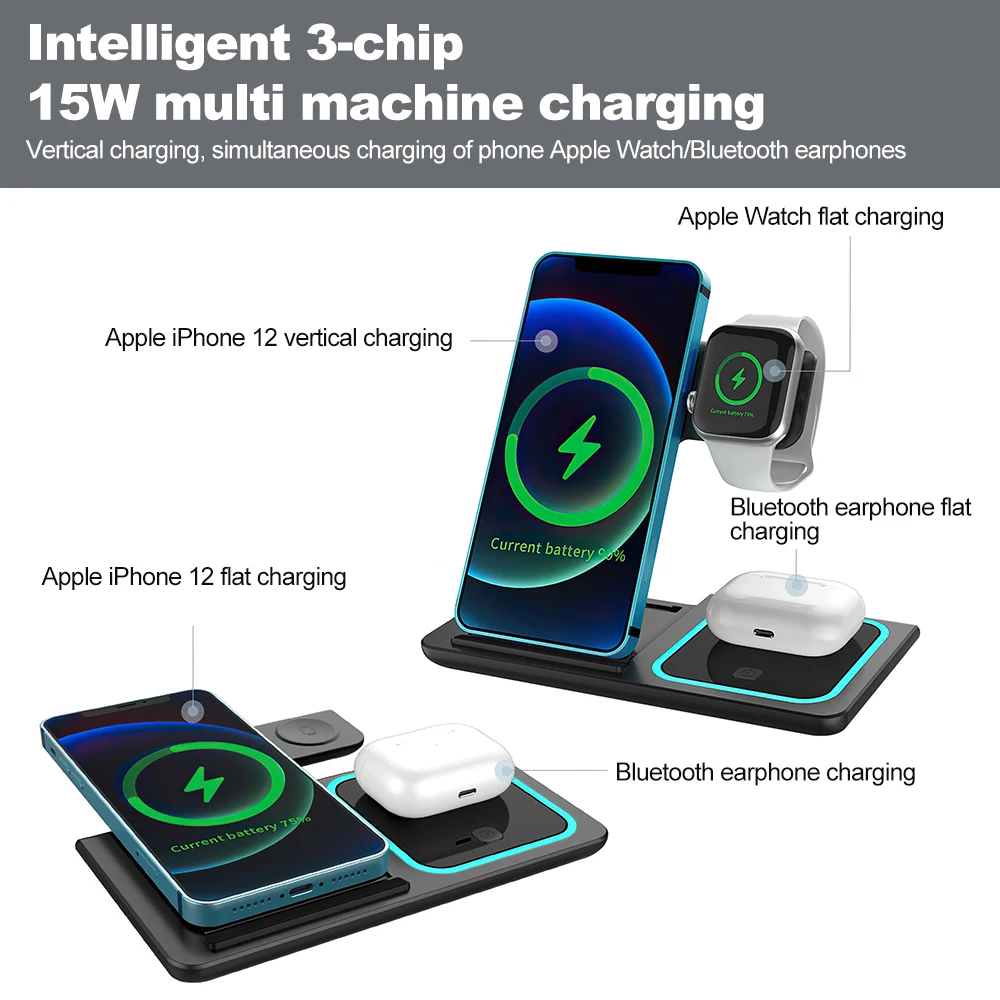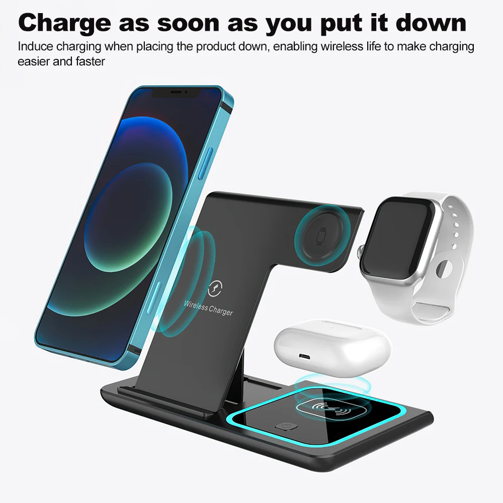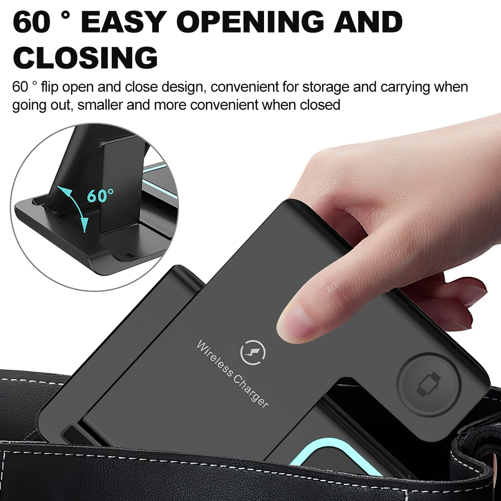 Wireless Foldable Charging Stand for iPhone, iWatch and Air Pods Pro