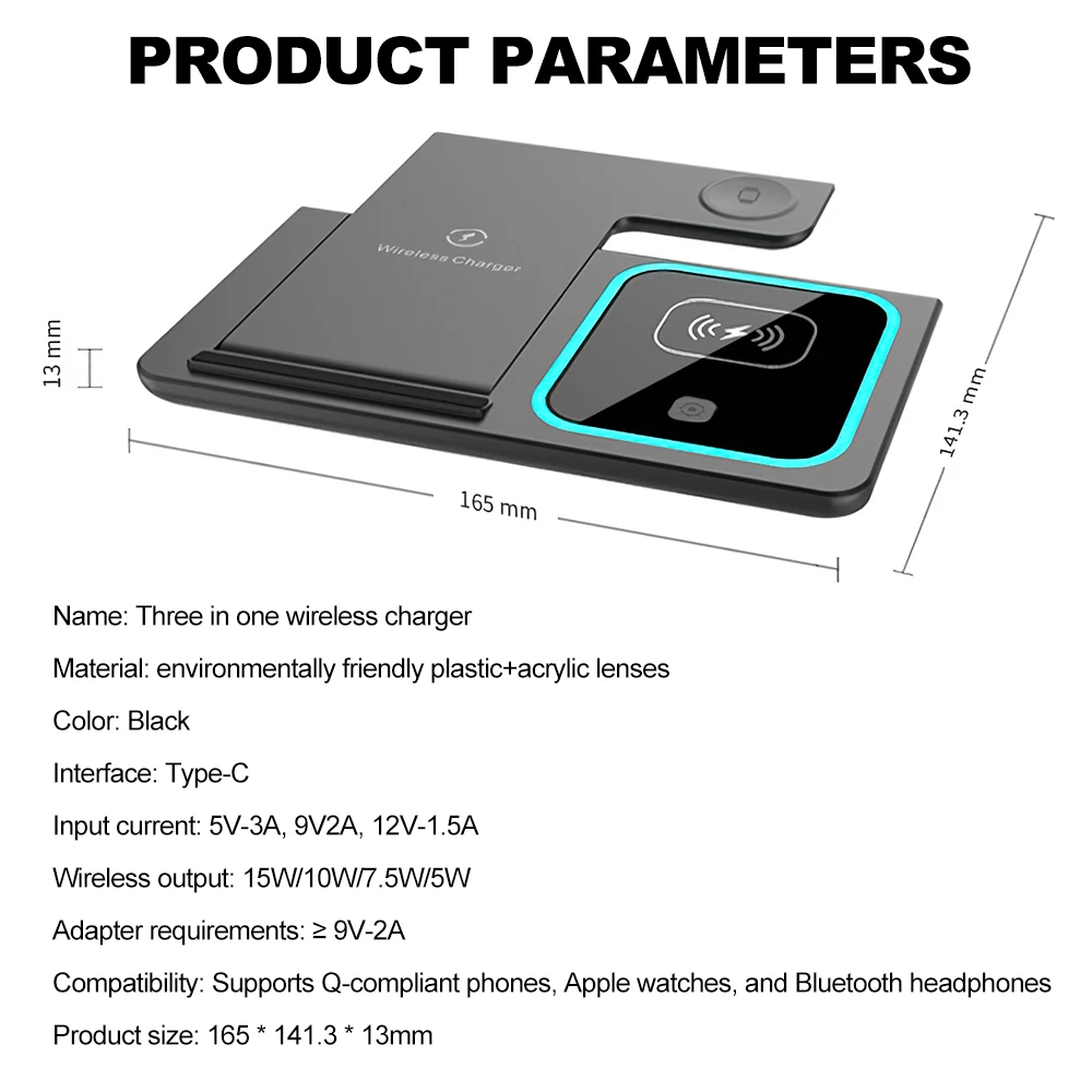 15W 3-in-1 Wireless Charger Dock - 1Pcs